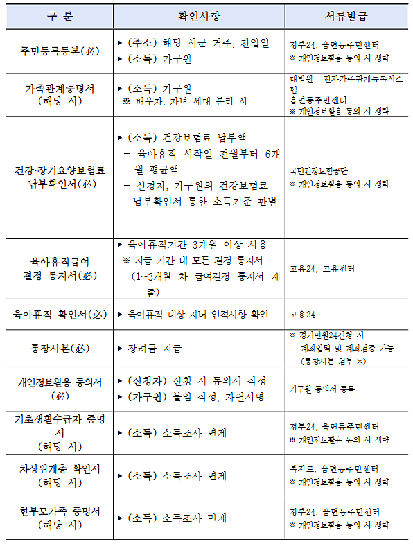 - 육아휴직 확인서 (근무 중인 회사에서 발급)
