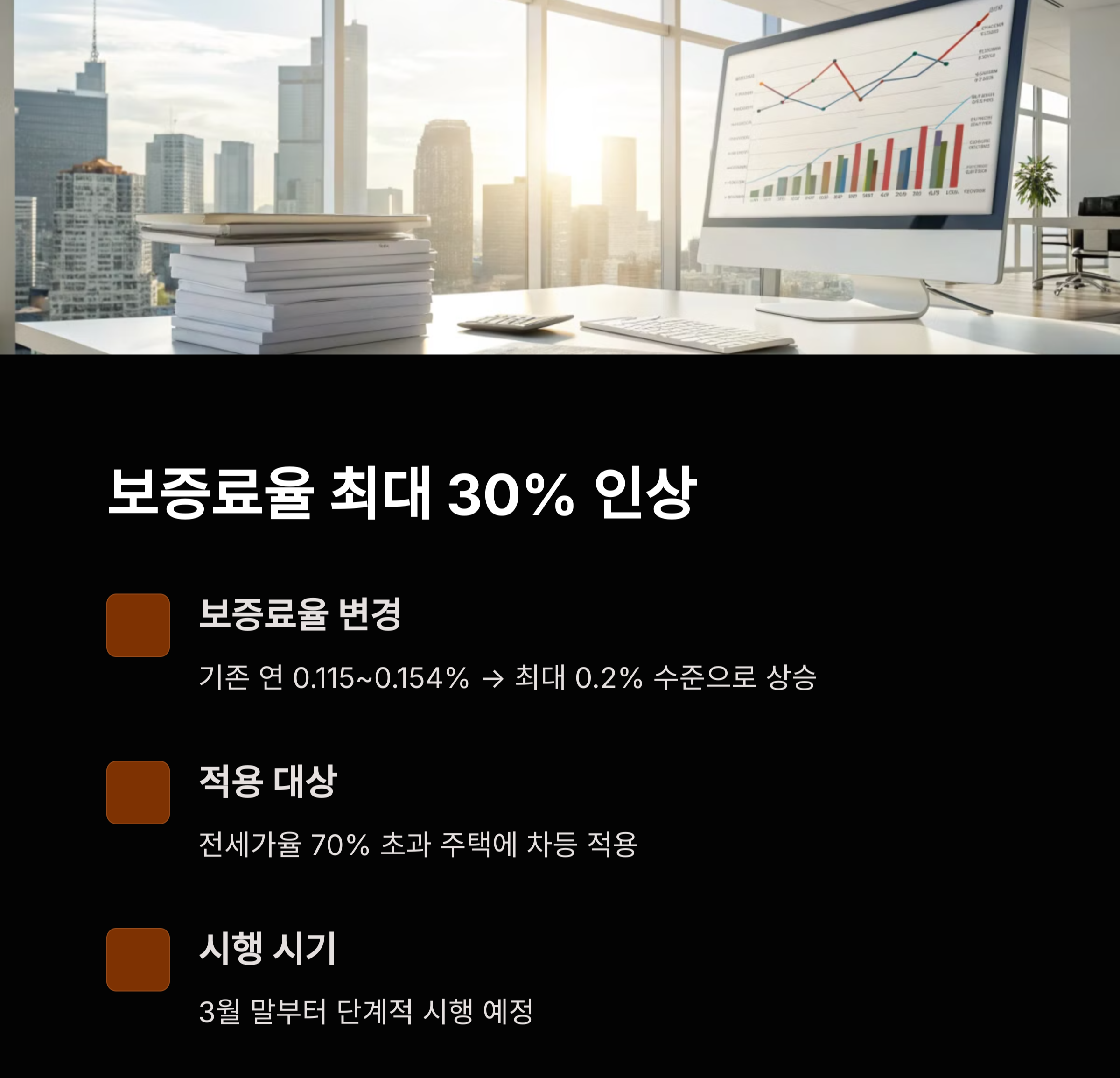 이에 따라 전세실수요자들의 전세자금대출 문턱은 더욱 높아질 전망입니다. 또한, 보험료율도 높아지기때문에 대출에 따른 비용도 더 많이 발생하게 됩니다.