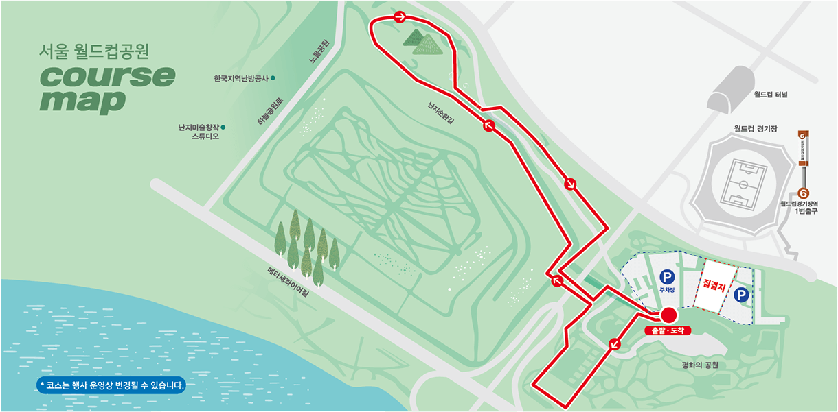 - 자가용 : 월드컵공원 주차장 이용 가능하나, 당일 혼잡 예정으로 가급적 대중교통 이용