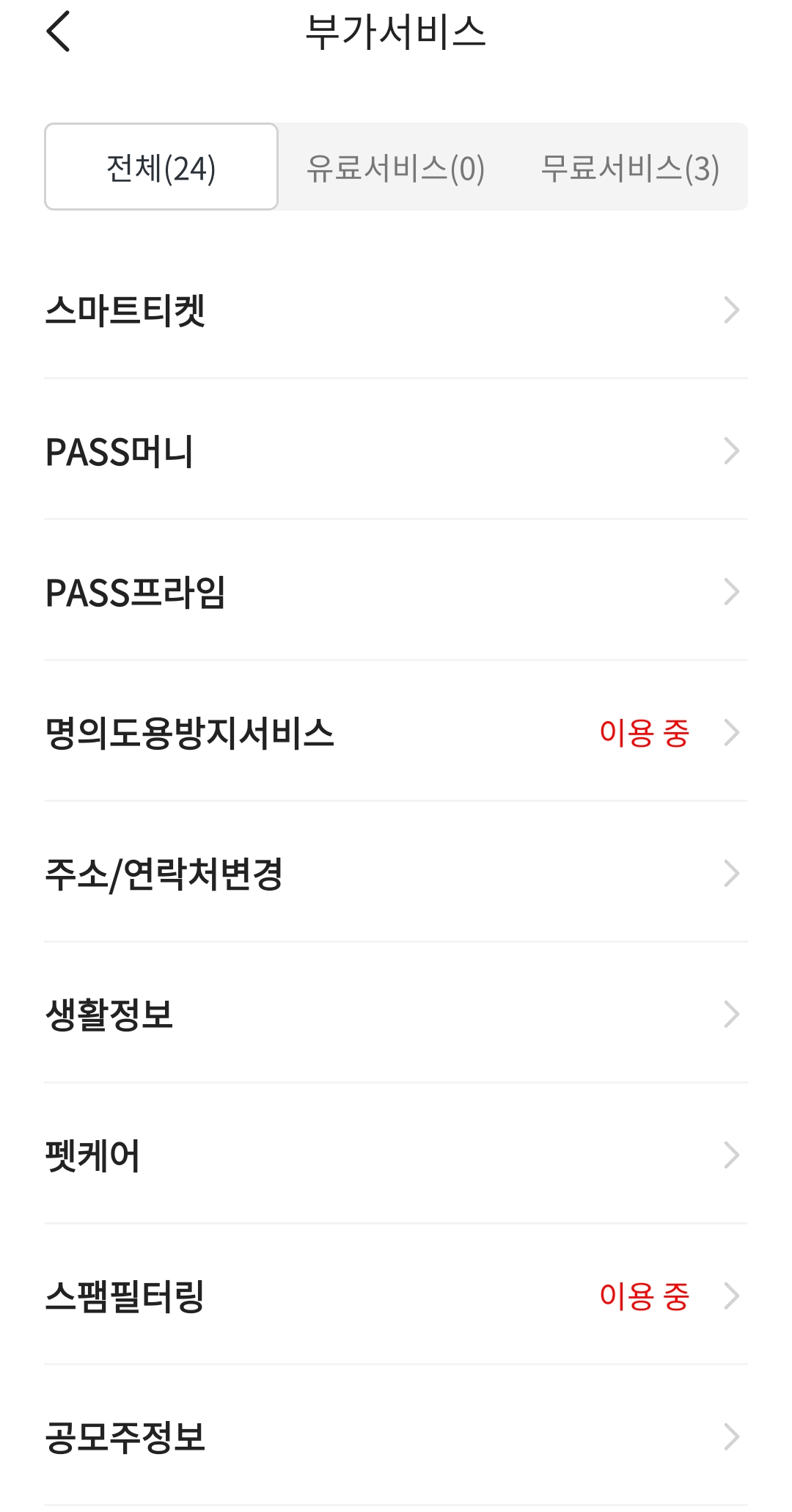 - 부가서비스 메뉴 중 '명의도용 방지 서비스' 가입